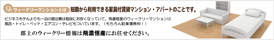 シーズン毎に色々な楽しみ方ができる郡上八幡。観光地なので旅館やホテルも数多くありますが、「もっと気軽に滞在したい!」「自宅にいるように寛ぎたい」そんなニーズにお答えできるのが「ウィークリーマンション郡上八幡」。